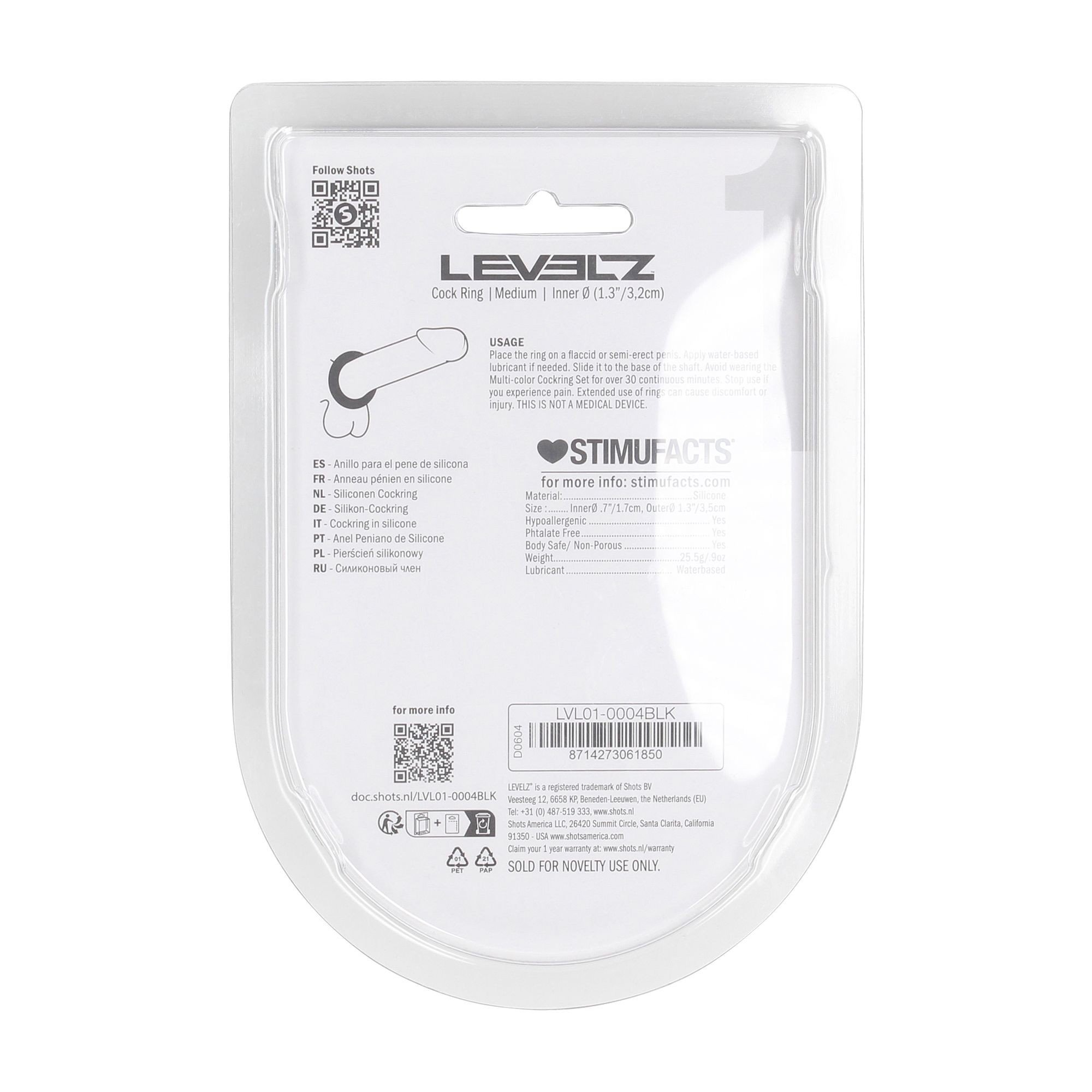 Levelz Cock Ring Medium je vyrobený z mäkkého a pružného silikónu, ktorý je veľmi elastický a pohodlný. Krúžok pevne obopína penis, pomáha zlepšiť erekciu a predĺžiť výkon bez kompromisov v pohodlí.