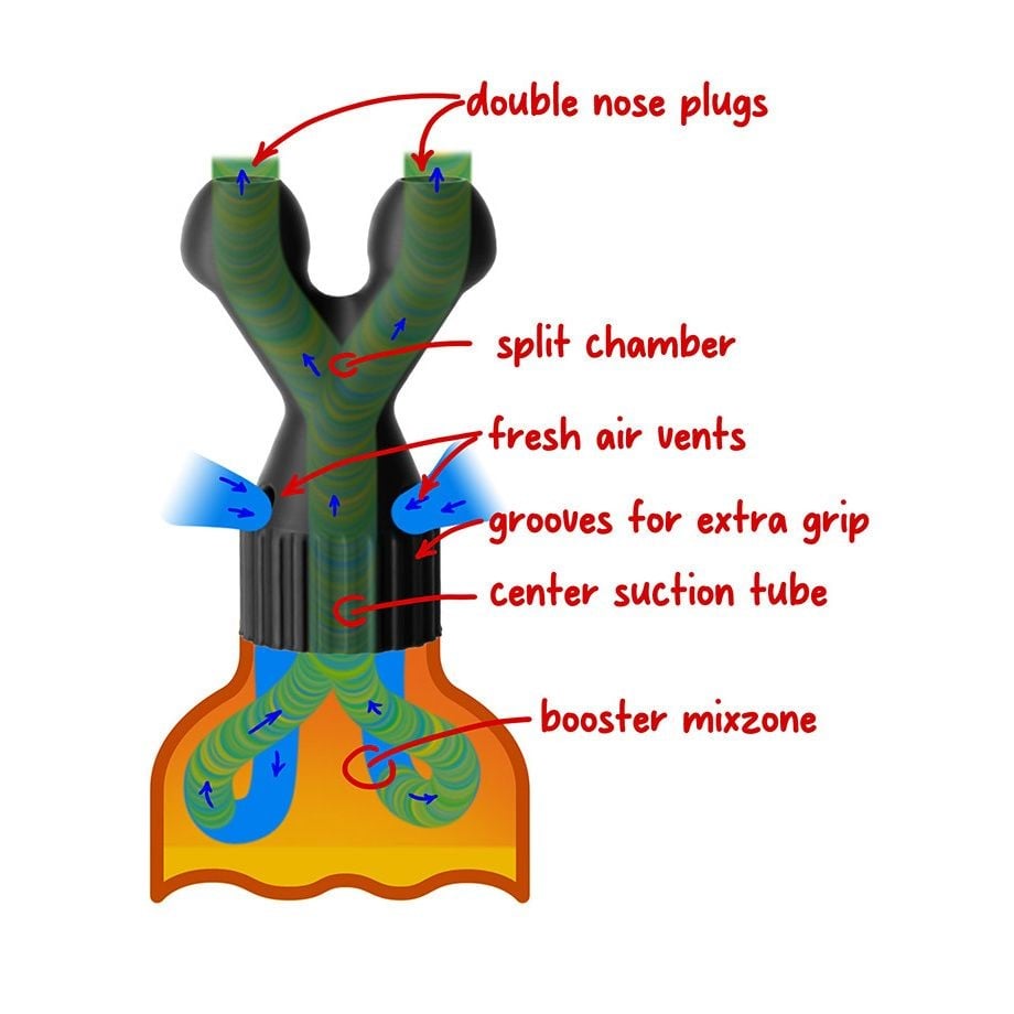 Inhalátor s dvoma inhalačnými otvormi, ktorý výrazne zosilňuje účinky poppersu. Po nasvietení sa inhalátor v tme svieti. Stačí ho naskrutkovať na fľašu a účinok poppers sa okamžite zosilní. Veľkosť je vhodná pre malé 9–10ml fľaše, veľké oválne 24–30ml fľaše, úzke vysoké fľaše a úzke hliníkové fľaše. Vyrobené v Európe. Viac informácií