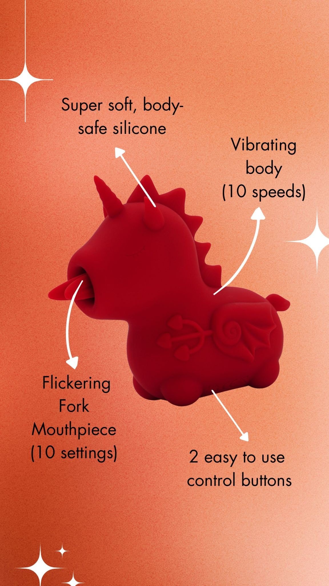 Výkonný stimulátor klitorisu v tvare jednorožca s 10 vibračnými programami a 10 režimami pohybu dlhého jazyka, ktoré je možné kombinovať podľa želania. Stimulátor je vyrobený z hebkého silikónu, je vodoodolný a dá sa nabíjať pomocou USB kábla. Viac informácií