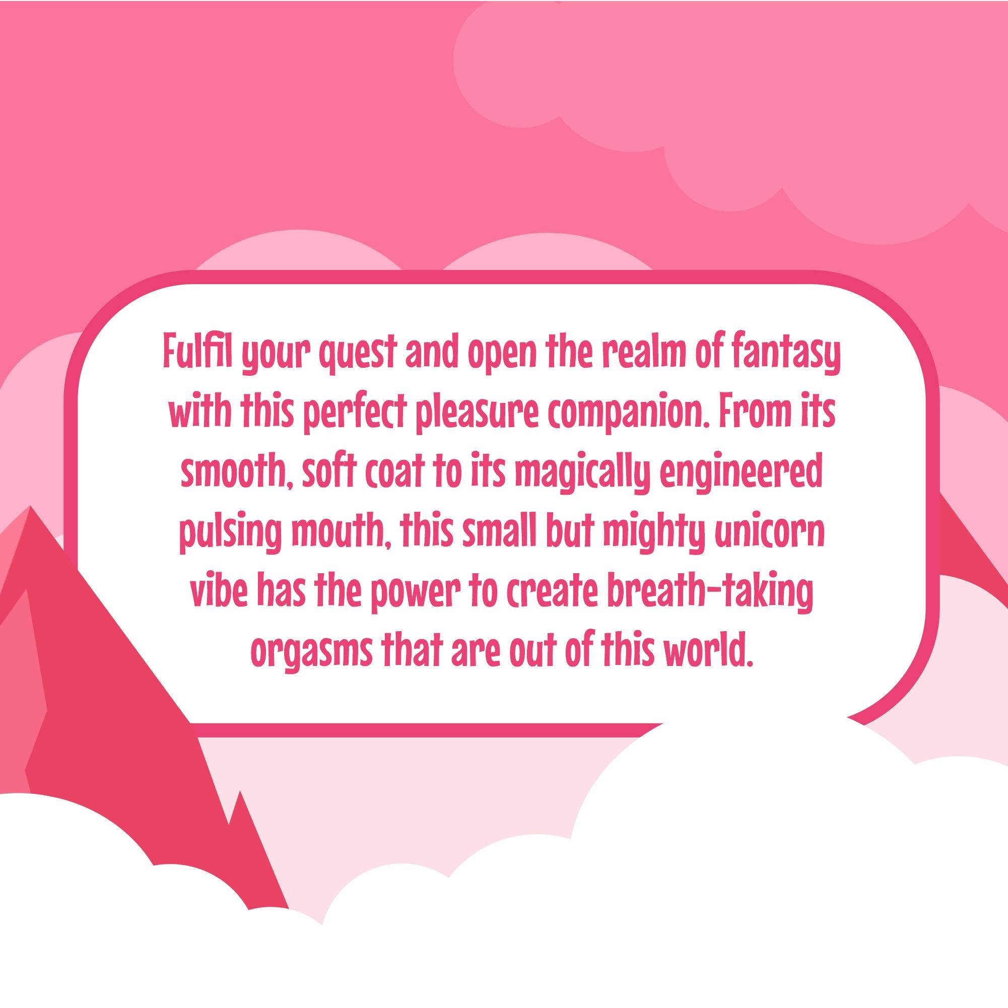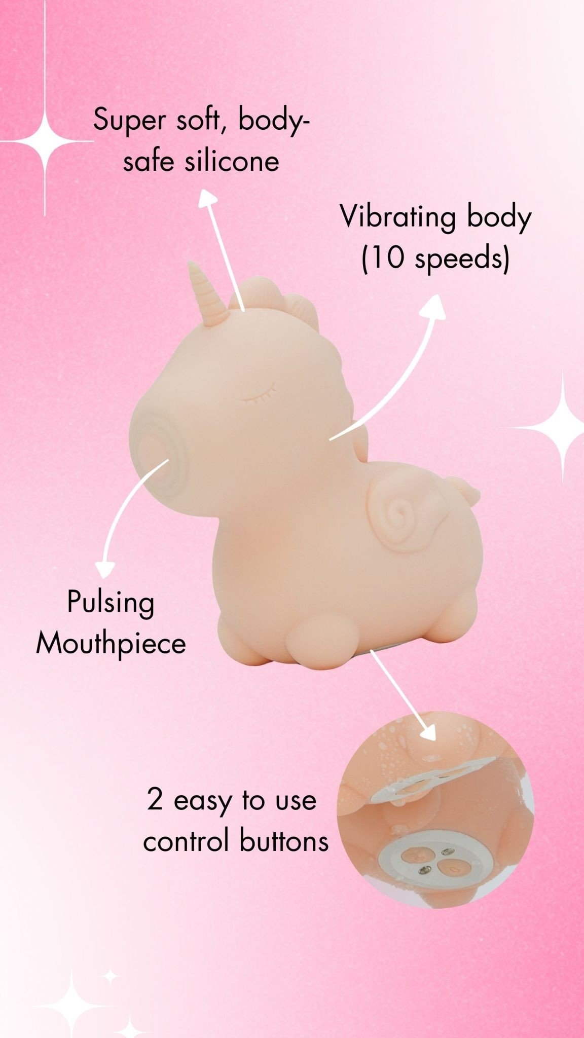 Výkonný stimulátor klitorisu v tvare jednorožca s 10 vibračnými programami a 10 pulzačnými režimami, ktoré možno voľne kombinovať. Stimulátor je vyrobený z hebkého silikónu, je vodoodolný a možno ho nabíjať pomocou USB kábla. Viac informácií