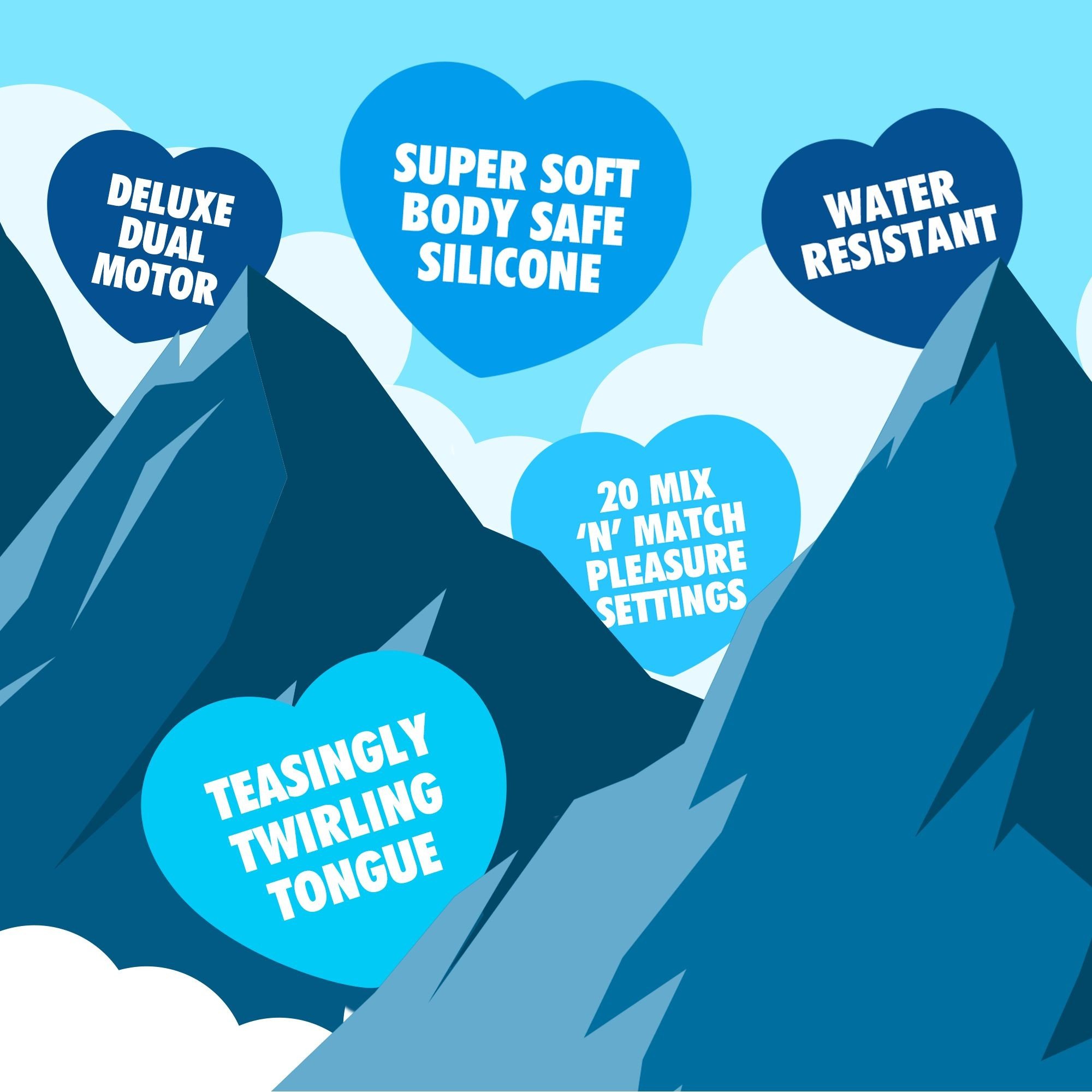 Jeho jazyk je expertom na dráždenie, krúženie a predlžovanie vyvrcholenia. Ponúka 10 intenzívnych pohybových režimov, ktoré môžete kombinovať s 10 vibračnými programami. Mount'n Peak sa riadi mottom: pomalá, vzrušujúca jazda je lepšia ako šprint do cieľa. Cítite to rovnako?
