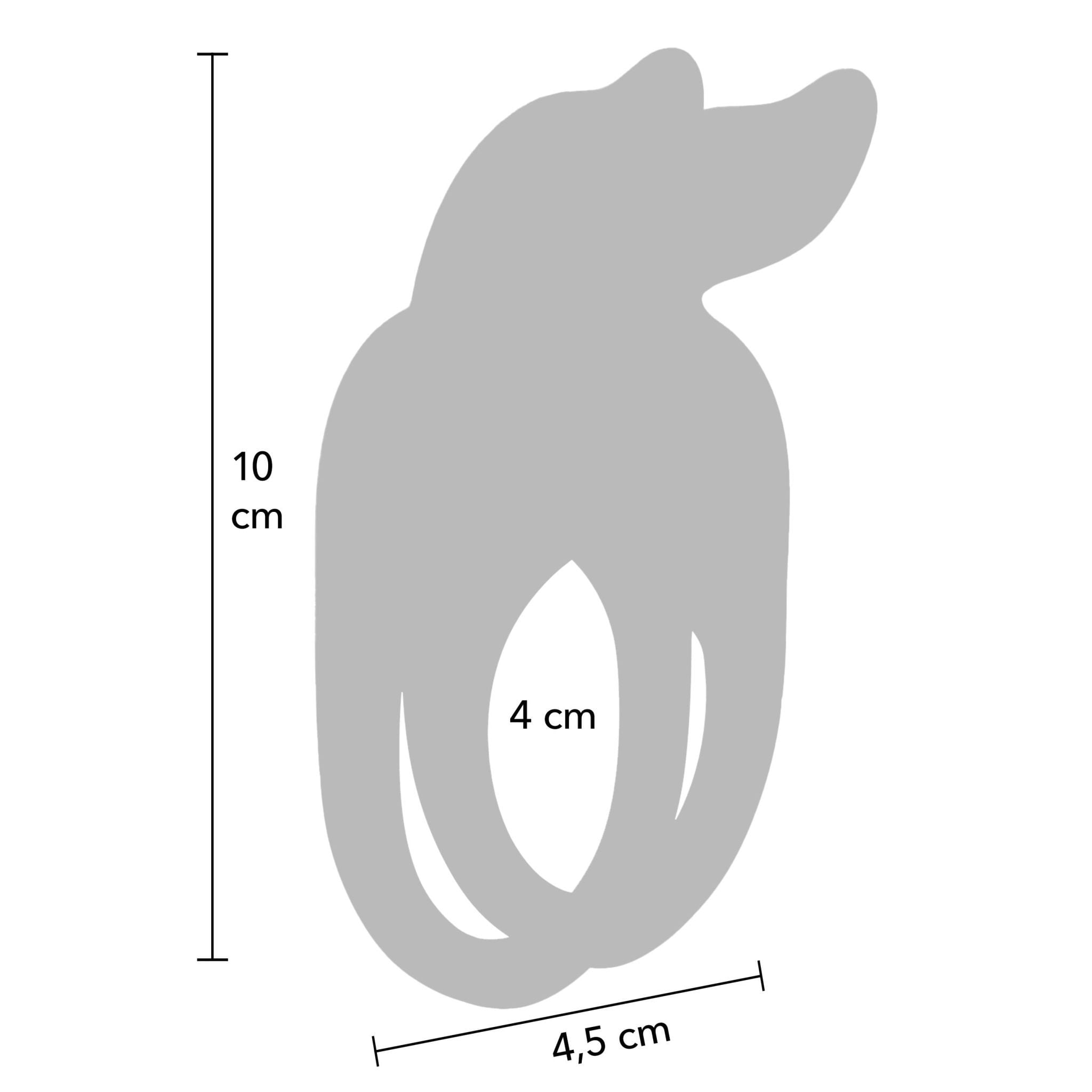 Rozmery (približne): dĺžka 10 cm, šírka 4,5 cm, vnútorný priemer krúžku 4 cm.