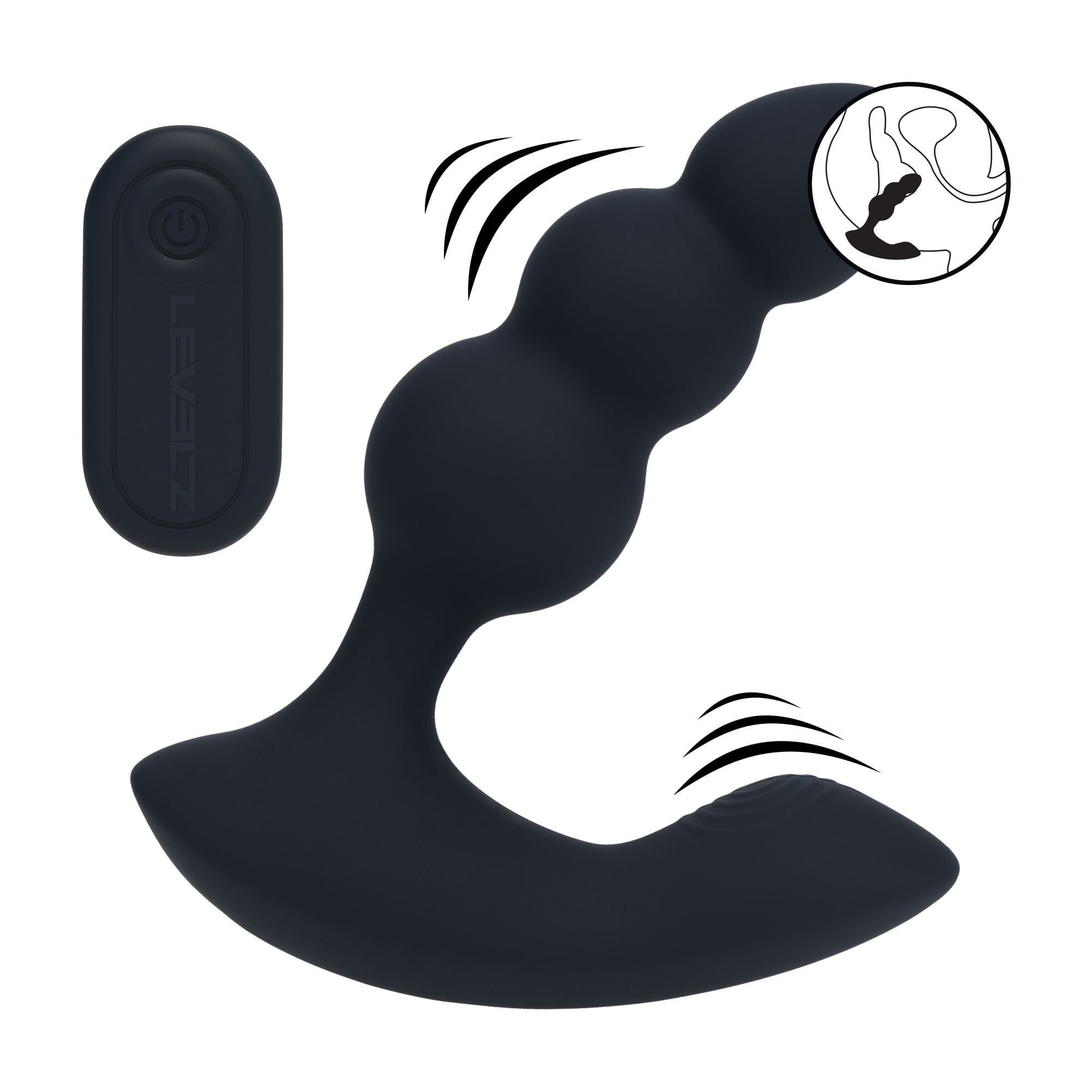 Výkonný stimulátor prostaty od Levelz vás odmení vibráciami na dvoch citlivých miestach súčasne. Jeho zakrivené telo sa skladá z troch postupne sa zväčšujúcich guličiek, ktoré vás príjemne vyplnia a stimulujú pri každom pohybe.