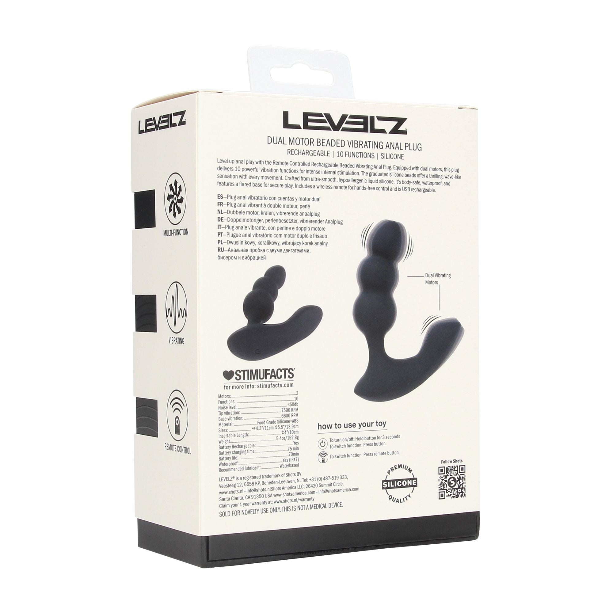 | Originálny názov | Levelz Dual Motor Beaded Vibrating Anal Plug |